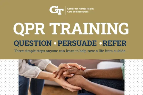 The 2-hour QPR training at Georgia Tech includes an hour of didactic instruction, followed by role-playing exercises, and time for questions and discussion. Take the first step in saving lives by signing up for a QPR training today. QPR trainings are open to all members of the Georgia Tech community.